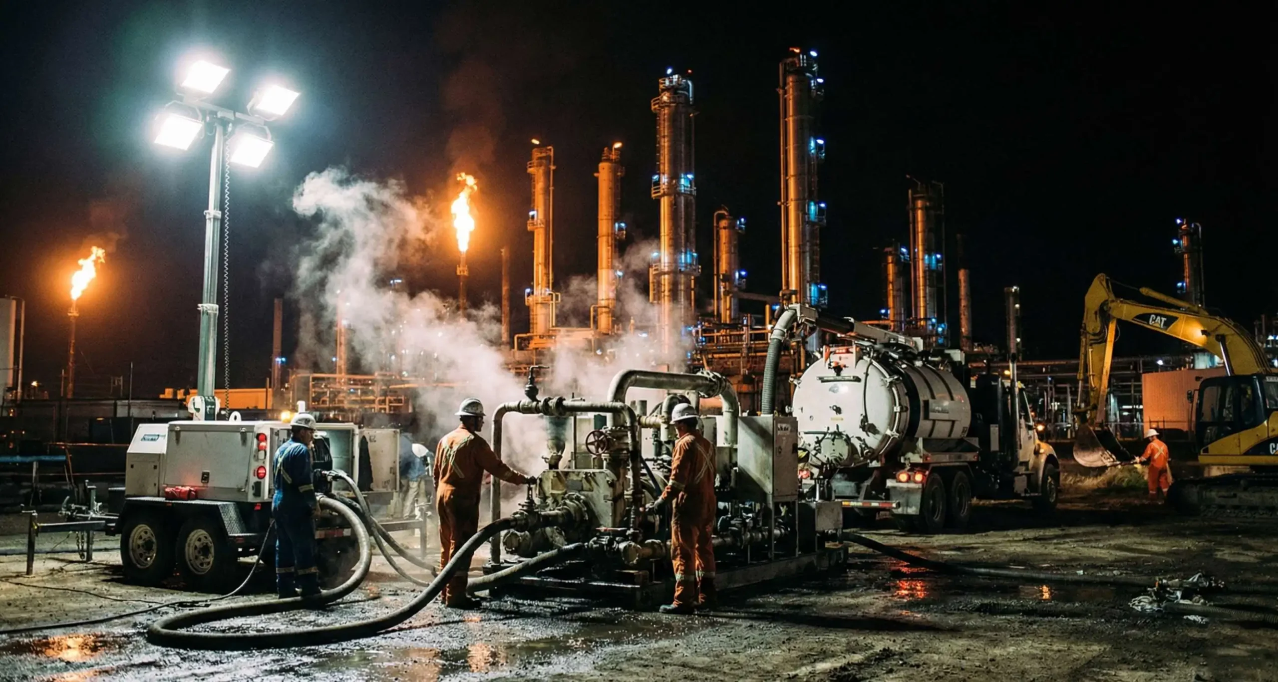 Rwaseb Al Naft Chemical Factory is a specialized industrial services company focused on oil sludge handling, treatment, recovery, and environmentally compliant disposal for the oil & gas sector. We support refineries, storage terminals, pipelines, and industrial facilities with reliable, safety-driven solutions designed for complex operational environments.