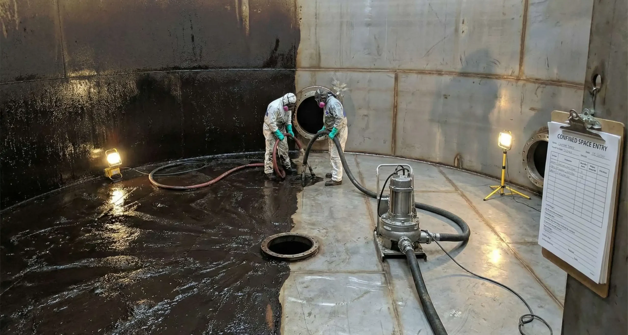 Internal tank cleaning using controlled methods to minimize downtime and ensure operational safety.