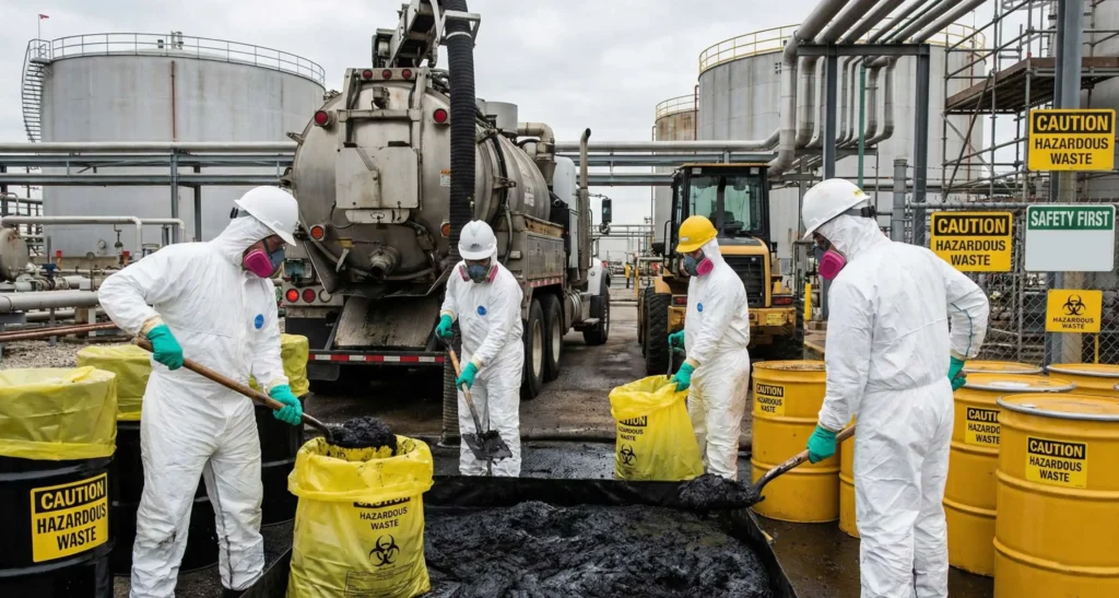 Rwaseb Al Naft Chemical Factory is a specialized industrial services company focused on oil sludge handling, treatment, recovery, and environmentally compliant disposal for the oil & gas sector. We support refineries, storage terminals, pipelines, and industrial facilities with reliable, safety-driven solutions designed for complex operational environments.